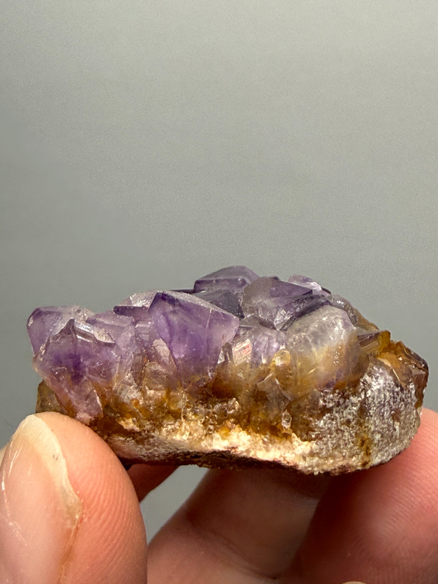 In the metaphysical community, ametrine is seen as a bridge between intuition and action — helping transform ideas into grounded reality. The hematite inclusions symbolically anchor higher awareness into physical form, making this a powerful meditation companion for clarity and manifestation work.