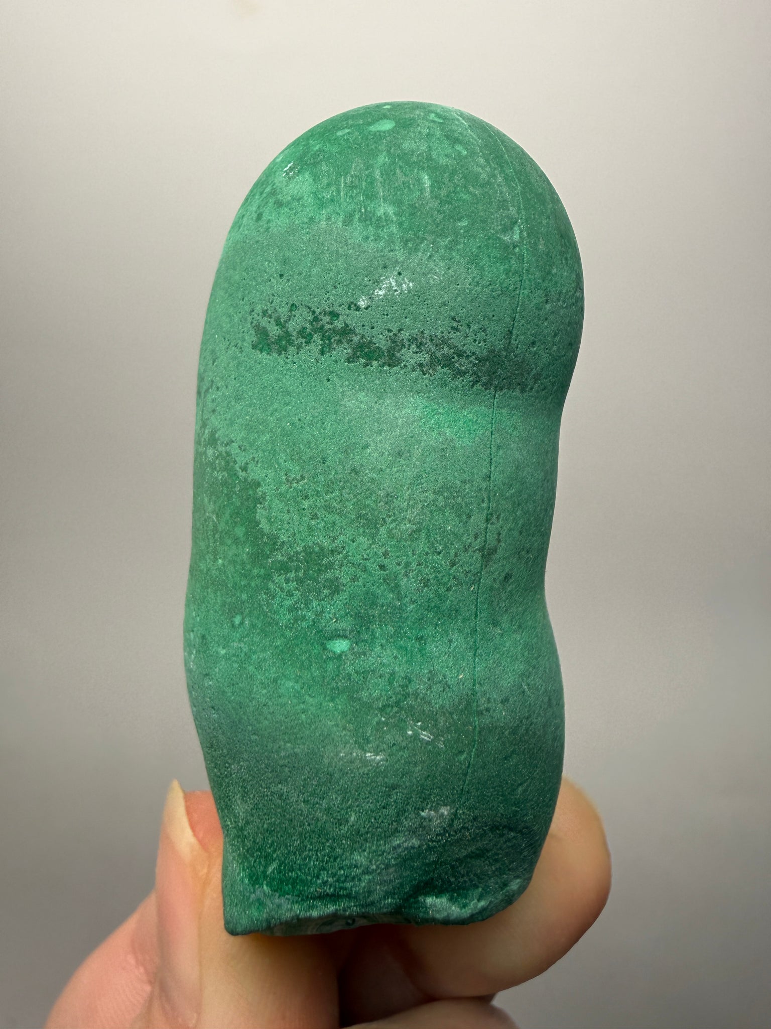 This authentic Malachite stalactite from the Democratic Republic of Congo is a show-stopping natural formation—built layer by layer as mineral-rich, copper-bearing solutions deposited malachite over time. The result is that iconic dripping stalactite structure with botryoidal (bubble-like) contours, velvety-to-satiny luster, and rich bands of green that feel straight out of an underground cave system.